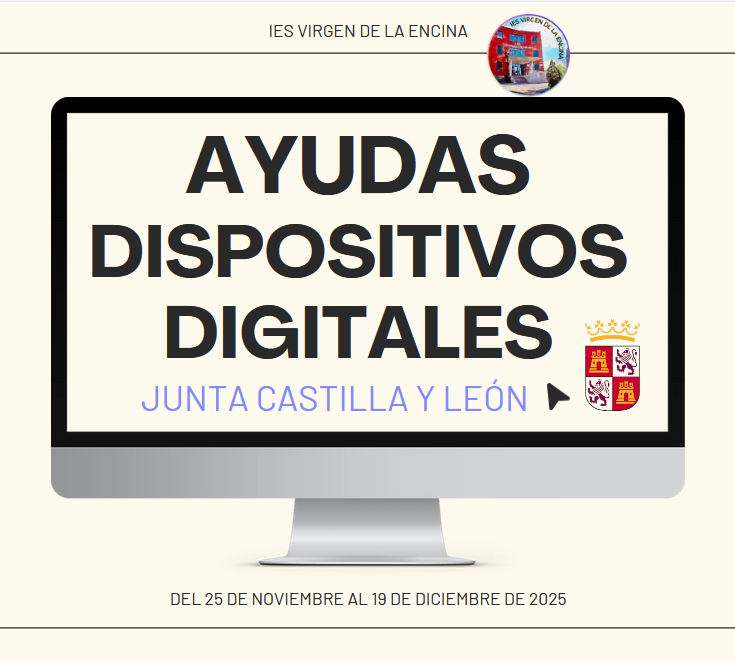 El 24 de noviembre de 2025 se publica en BOCYL el extracto de la Orden de 4 de noviembre de 2025, de la Consejería de Educación, por la que se convocan ayudas dirigidas a la adquisición de dispositivos digitales para su utilización por alumnado que curse determinadas enseñanzas no universitarias en centros docentes de la Comunidad de Castilla y León para el curso escolar 2025-2026.